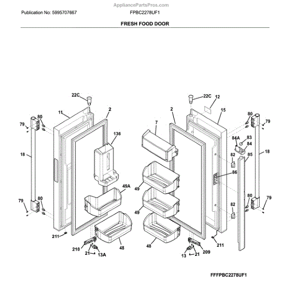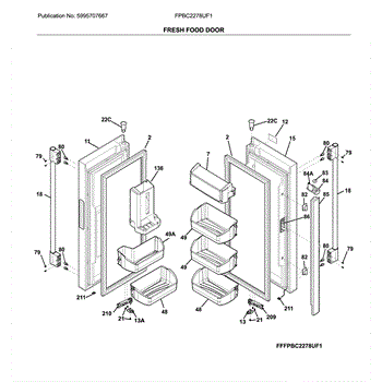 The Door Bin is an OEM part for Frigidaire refrigerators. It is located on the lower part of the refrigerator door, designed to hold larger items such as gallon-sized containers or tall bottles.