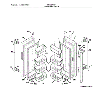 The Door Bin is an OEM part for Frigidaire refrigerators. It is located on the lower part of the refrigerator door, designed to hold larger items such as gallon-sized containers or tall bottles.