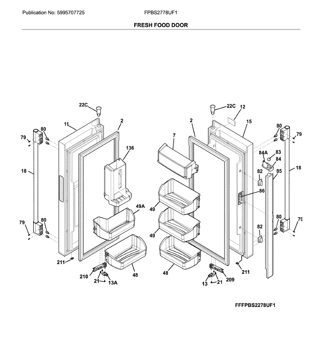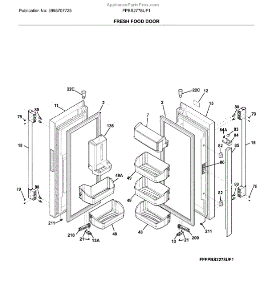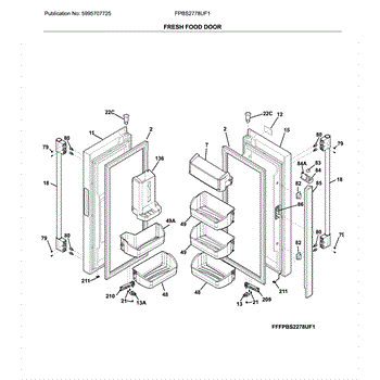 The Door Bin is an OEM part for Frigidaire refrigerators. It is located on the lower part of the refrigerator door, designed to hold larger items such as gallon-sized containers or tall bottles.