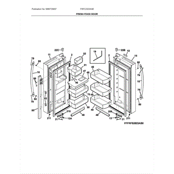 This is the refrigerator door bin that mounts into the inner door liner to hold bottles, condiments, and jars. Replace a cracked or missing bin to restore secure storage and keep items organized and accessible.