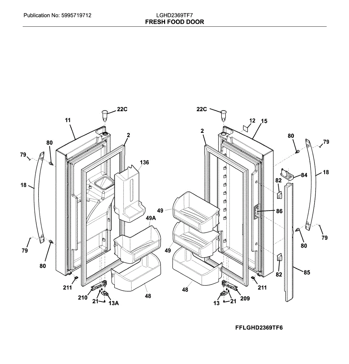 Complete door assembly for bottom-mount refrigerators. Replace your cracked, damaged, or warped refrigerator door to restore proper sealing and appearance.