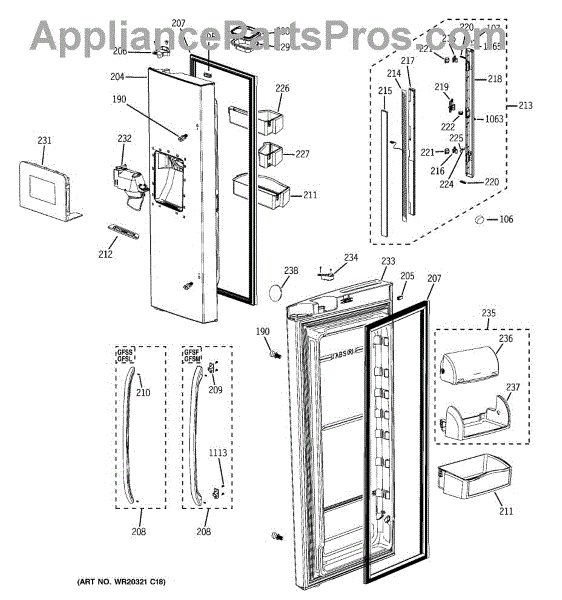 Parts for Ge GFSF6KKYEWW: 02 - Fresh Food Doors Parts