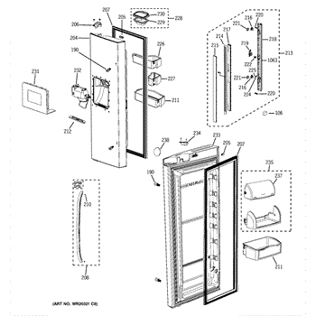 This is an ice chute and funnel assembly for refrigerators with ice dispensers on their doors. The chute opens upon the user's command input and releases ice into a glass or other container placed underneath it. With use, because of misuse, or as a result of accidental damage, part or all of the ice chute door and funnel may malfunction or fail entirely. When this happens, a replacement part is required to continue using the ice dispensing feature.If the ice chute no longer dispenses ice, or if it is dispensing too much or too little ice, it's a good indication that there is something wrong with this part of the appliance. It's a quick repair. It is always recommended to unplug the device before beginning the replacement. Move any food that could spoil while the repair is being completed.This refrigerator ice dispenser ice chute door and funnel assembly is a genuine OEM replacement part. It is sourced directly from the manufacturer. It is sold as an individual unit and made of durable materials. The replacement part is compatible with several models of refrigerators manufactured by General Electric, Hotpoint, and RCA.