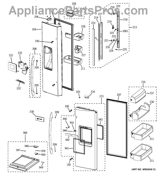 This is an ice chute and funnel assembly for refrigerators with ice dispensers on their doors. The chute opens upon the user's command input and releases ice into a glass or other container placed underneath it. With use, because of misuse, or as a result of accidental damage, part or all of the ice chute door and funnel may malfunction or fail entirely. When this happens, a replacement part is required to continue using the ice dispensing feature.If the ice chute no longer dispenses ice, or if it is dispensing too much or too little ice, it's a good indication that there is something wrong with this part of the appliance. It's a quick repair. It is always recommended to unplug the device before beginning the replacement. Move any food that could spoil while the repair is being completed.This refrigerator ice dispenser ice chute door and funnel assembly is a genuine OEM replacement part. It is sourced directly from the manufacturer. It is sold as an individual unit and made of durable materials. The replacement part is compatible with several models of refrigerators manufactured by General Electric, Hotpoint, and RCA.