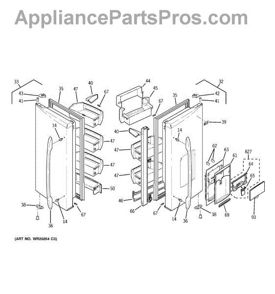 The Dispenser Shield is an OEM part for GE refrigerators equipped with water and ice dispensers. This shield acts as a protective cover for the dispenser area, preventing accidental spills or debris from entering the internal mechanisms.