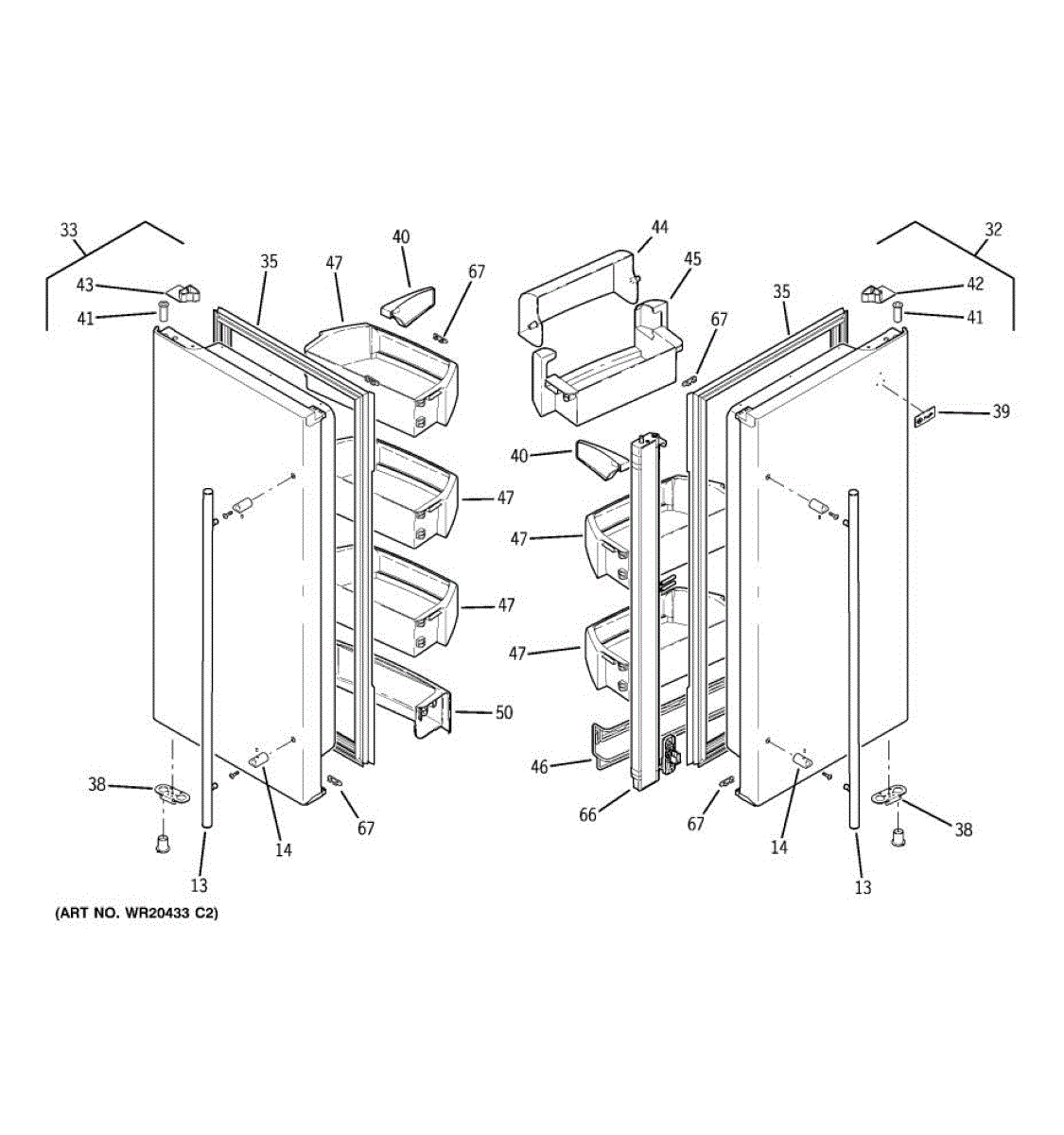 This articulation mullion is the flip-out center rail on a French-door refrigerator. It swings into place as the door closes to seal the gap between doors, helping maintain proper temperatures and limit moisture around the center joint.