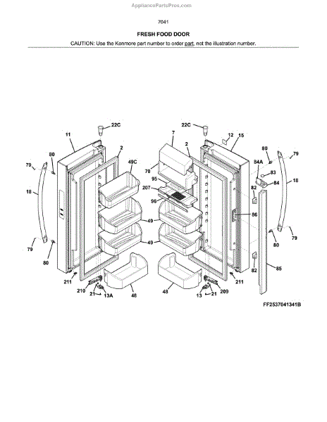 Parts for Kenmore 253.7041241B (2537041241B, 253 7041241B): Fresh Food Doors Parts