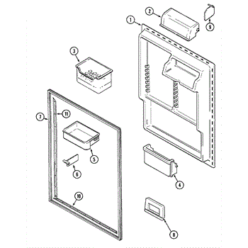 White plastic bucket stop for refrigerator door shelves. Replaces broken, cracked, or missing stops. Measures approximately 2/3" wide by 1/2" deep.