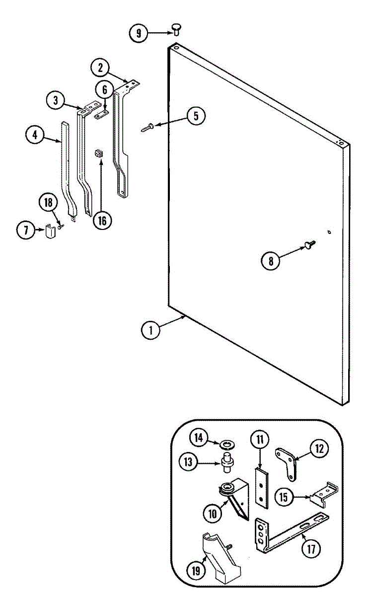 Mounting screw secures panels, brackets, and trim on refrigerators and washers. Replace when fasteners are missing, loose, stripped, or damaged.