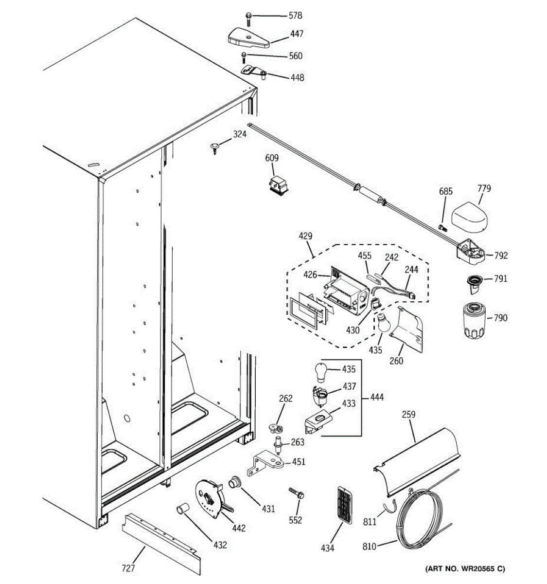 The cold water reservoir is an OEM replacement part for GE refrigerators. It serves a dual purpose, holding the supply of cold water needed for both the ice maker and water dispensing functions. This ensures that each ice cube is formed from chilled water and that cold water is always ready to be dispensed. Causes of a bad reservoir can include cracks, fractures, or leaks developing in the plastic over time due to repeated filling and draining. Mineral deposits or contamination of the water supply can also compromise performance. Symptoms of an issue include: