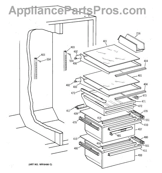 Parts for Ge MSK28DHZCWW: 06 - Fresh Food Section Parts