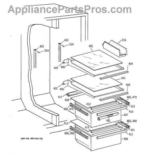 Parts for Ge MST26GRDAWW: 04 - Fresh Food Section Parts