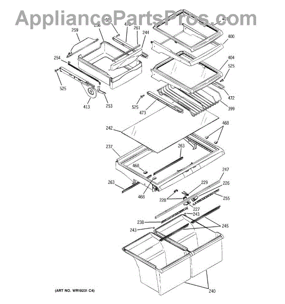 The Slide Pan Right Hand is an OEM part for GE refrigerators. This component supports and guides the movement of the refrigerator's crisper or deli drawer, allowing it to slide in and out smoothly. It ensures easy access to stored food items and helps maintain proper alignment and functionality of the drawer.
