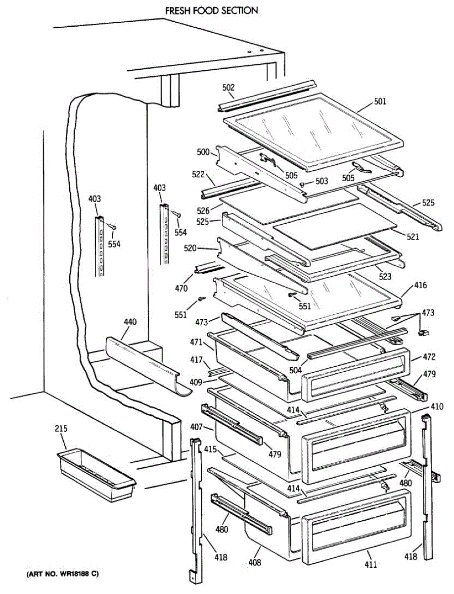Parts for Ge TFG27PRXAWW: 05 - Fresh Food Section Parts