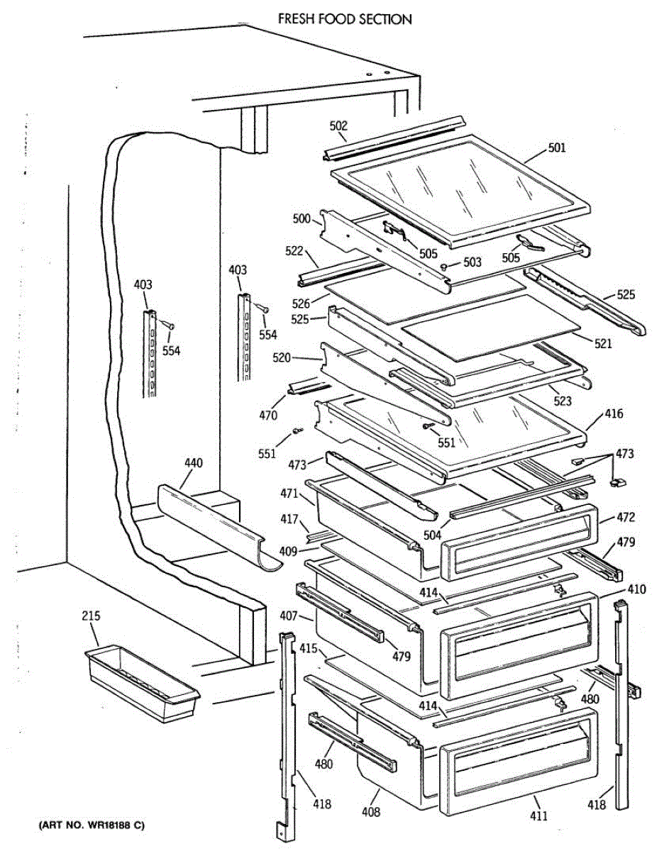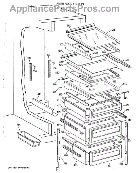 Parts for Ge TFH22PRXAWW: 05 - Fresh Food Section Parts