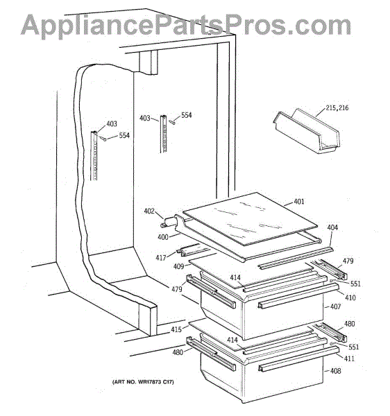 Parts for Ge TFT20JABEWW: 04 - Fresh Food Section Parts