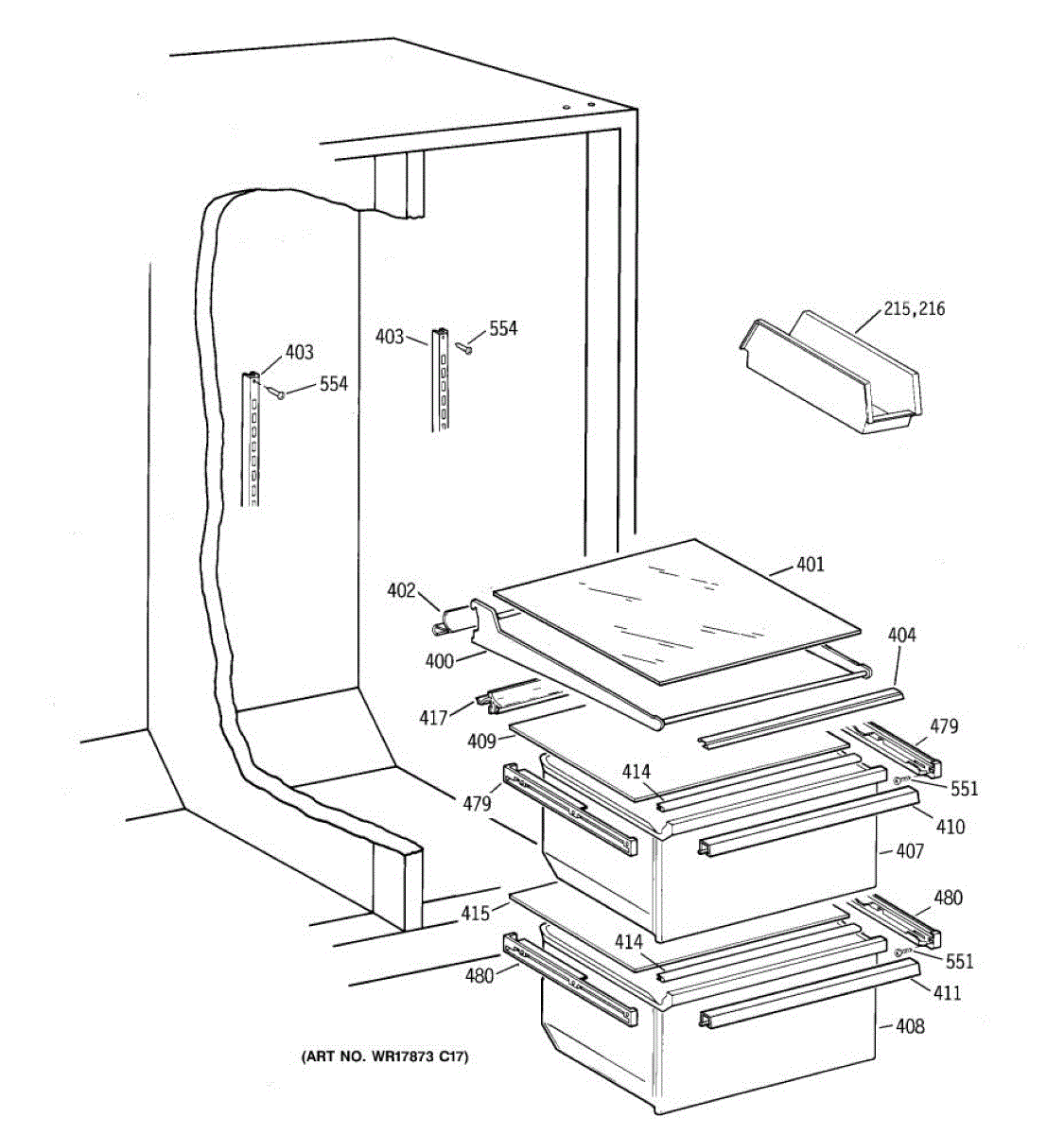 Parts for Ge TFT20JABGWW: 04 - Fresh Food Section Parts