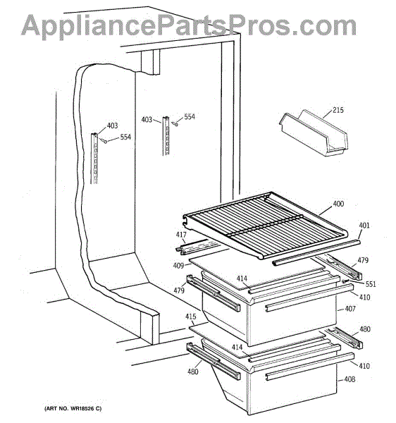 Parts for Ge TFT20SABEWW: 04 - Fresh Food Section Parts