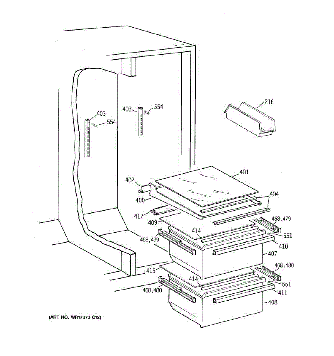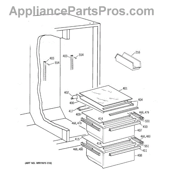 Parts for Ge TFX20JABCWW: 06 - Fresh Food Section Parts