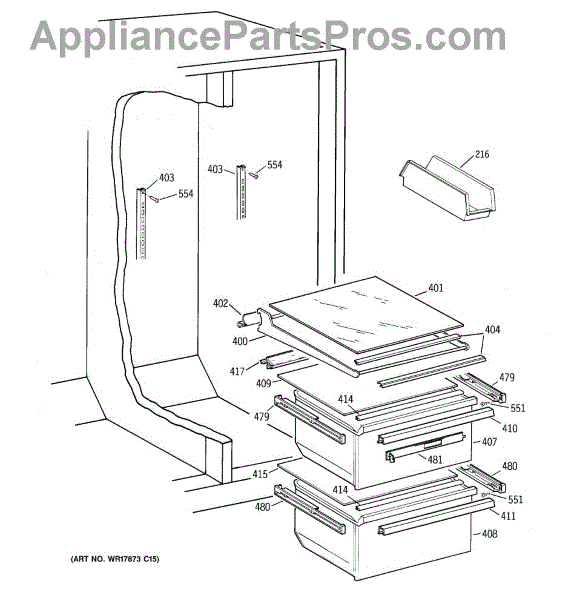 Parts for Ge TFX20JABKAA: 06 - Fresh Food Section Parts