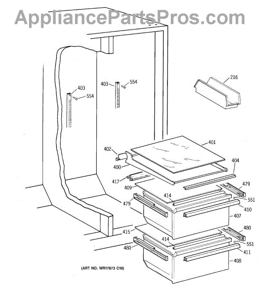 Parts for Ge TFX20JRBBWH: 08 - Fresh Food Section Parts