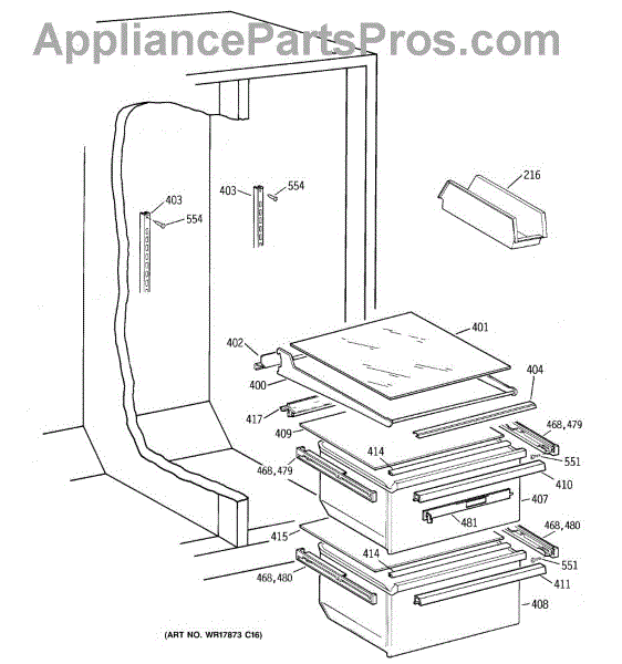 Parts for Ge TFX22GRBGWW: 07 - Fresh Food Section Parts