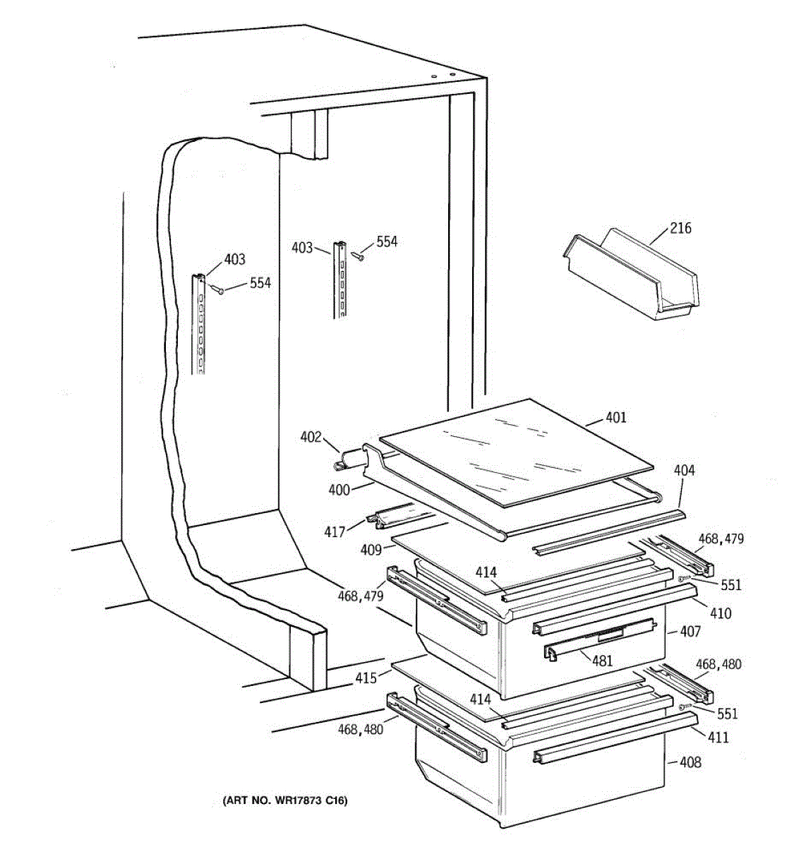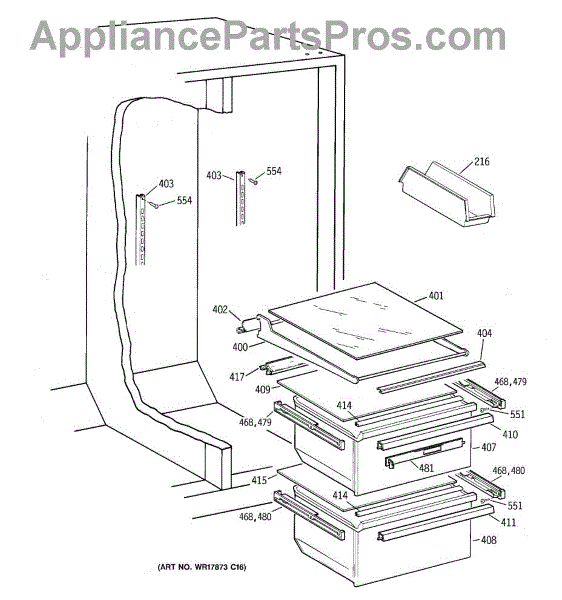 Parts for Ge TFX22JABEWW: 06 - Fresh Food Section Parts