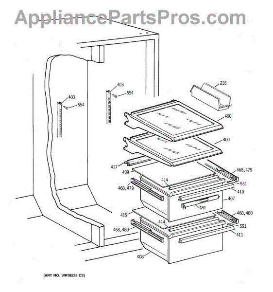 Parts for Ge TFX22KRCCWW: 06 - Fresh Food Section Parts