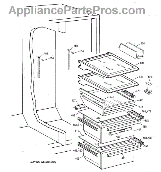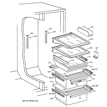 Parts for Ge TFX25VPBEWW: 05 - Fresh Food Section Parts