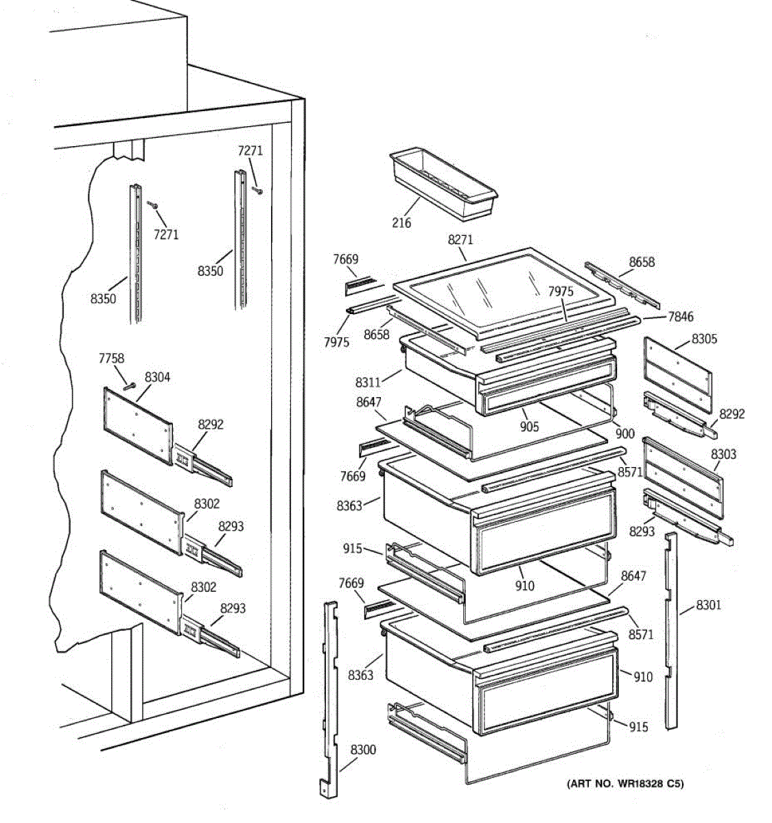 • Supports and aligns the deli/snack drawer under the fresh-food shelf