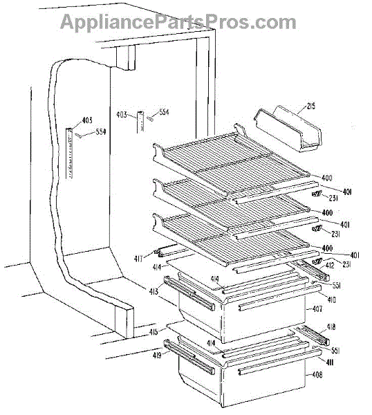 Parts for Kenmore 363.8500414 (3638500414, 363 8500414): Fresh Food Section Parts