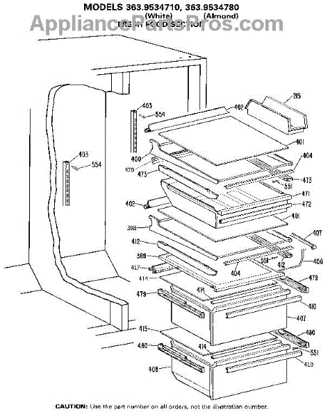 Parts for Kenmore 363.9534780 (3639534780, 363 9534780): Fresh Food Section Parts
