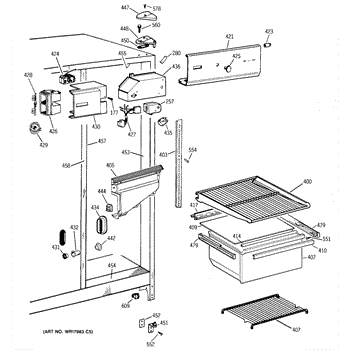 The Drawer Slide Assembly is an OEM part for GE refrigerators. It allows for smooth and easy movement of the refrigerator drawers, ensuring convenient access to stored food items. It provides the necessary support and stability to hold the weight of the contents within the drawers. The slide measures approximately 16 1/4 inches long.