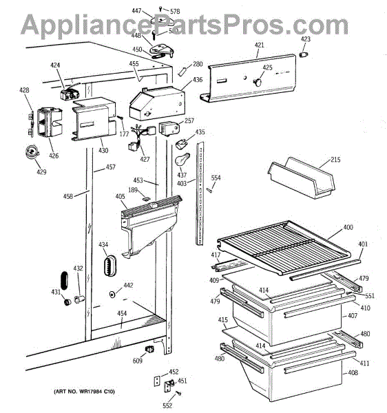 The Slide Assembly RH is an OEM replacement part for GE side-by-side refrigerators. As a replaceable sub-assembly, it restores smooth extension of plastic vegetable/multi-purpose slides on the right interior. The slide measures approximately 16 inches.