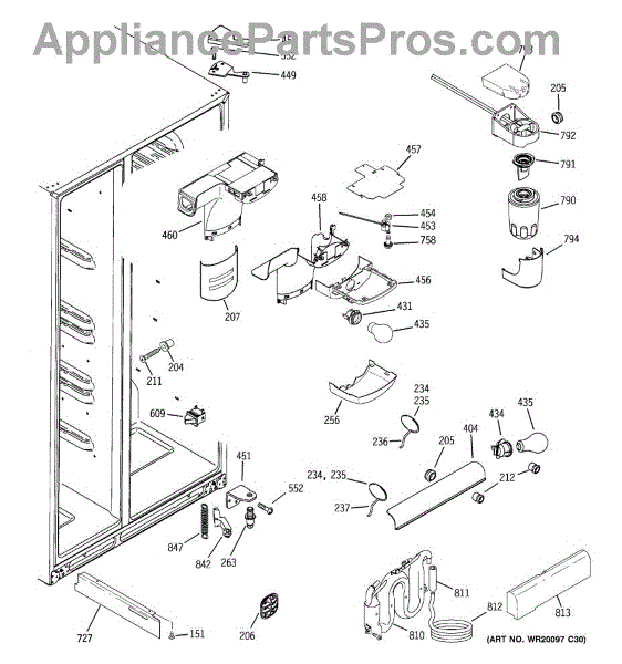 The Water Filter Housing Assembly is an OEM part for GE refrigerators. The water filter head holds the water filter and connects the water lines to the water filter. Includes the filter head and water lines. Causes can involve cracks, deformities or wear to sealing surfaces over time. Accidental dents or impacts may compromise housing integrity. Symptoms of a bad housing assembly include: