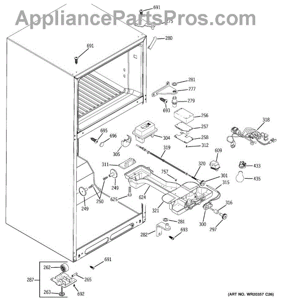 This leveling leg supports and stabilizes the refrigerator cabinet. Adjusting it keeps the unit level so doors align and seal correctly, helping reduce vibration and noise for smoother, more reliable performance.