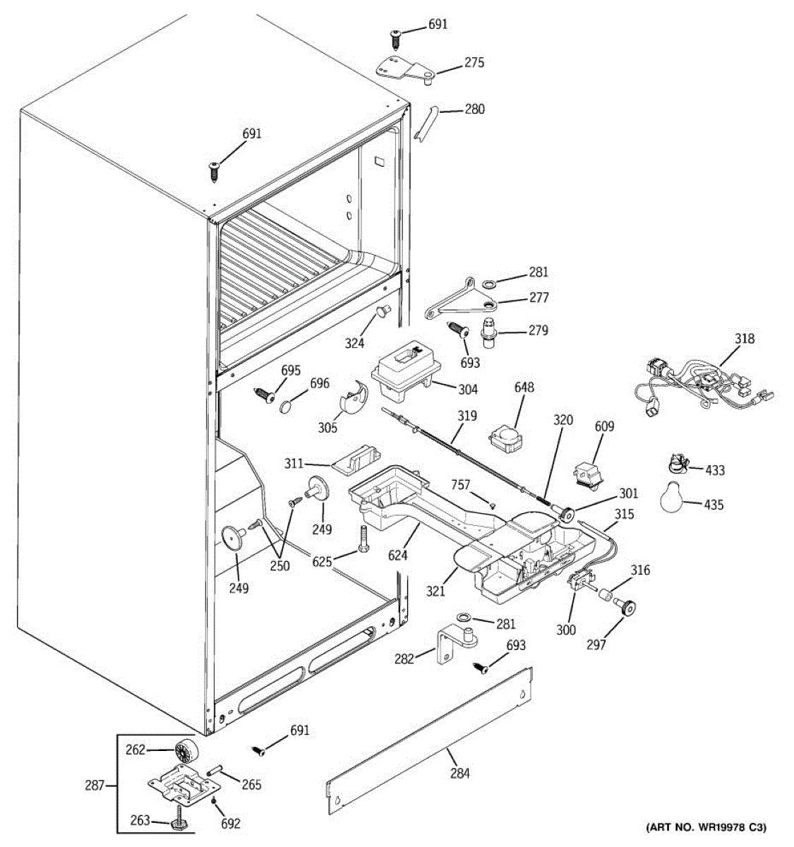 This leveling leg supports and stabilizes the refrigerator cabinet. Adjusting it keeps the unit level so doors align and seal correctly, helping reduce vibration and noise for smoother, more reliable performance.
