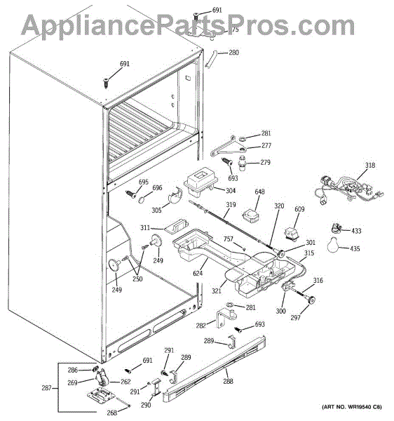 Parts for Ge DTS18ZBRLRWW: 04 - Fresh Food Section Parts