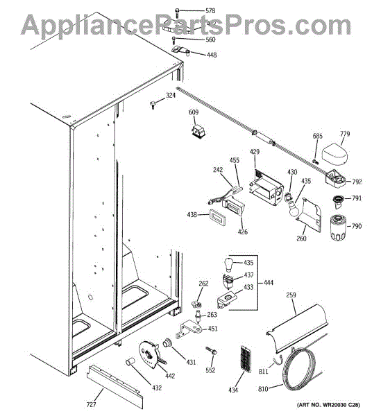 The cold water reservoir is an OEM replacement part for GE refrigerators. It serves a dual purpose, holding the supply of cold water needed for both the ice maker and water dispensing functions. This ensures that each ice cube is formed from chilled water and that cold water is always ready to be dispensed. Causes of a bad reservoir can include cracks, fractures, or leaks developing in the plastic over time due to repeated filling and draining. Mineral deposits or contamination of the water supply can also compromise performance. Symptoms of an issue include: