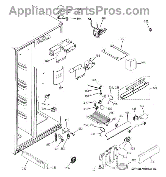 The Refrigerator Damper Assembly is an OEM part for GE refrigerators. It regulates the flow of cold air from the freezer compartment to the refrigerator, ensuring proper temperature control within the fridge.