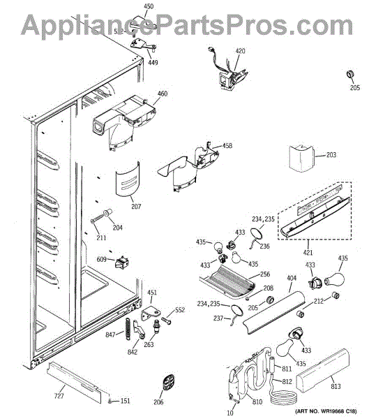 The Refrigerator Damper Assembly is an OEM part for GE refrigerators. It regulates the flow of cold air from the freezer compartment to the refrigerator, ensuring proper temperature control within the fridge.