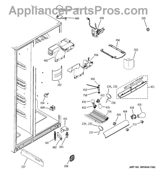 The Refrigerator Damper Assembly is an OEM part for GE refrigerators. It regulates the flow of cold air from the freezer compartment to the refrigerator, ensuring proper temperature control within the fridge.