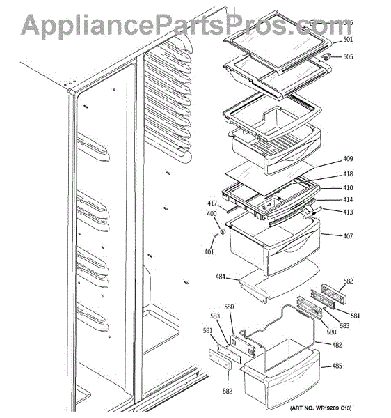 The Humidity Control Slide is an OEM replacement part for GE refrigerators. This slide is responsible for adjusting settings inside the refrigerator such as the crisper humidity levels. Proper functioning of the humidity control slide allows for optimization of storage conditions based on the specific items stored. Causes of a bad humidity control slide can include normal wear and tear over time, as well as issues like damage or obstruction that prevent the smooth operation of the slide mechanism. Symptoms of a bad humidity control slide include: