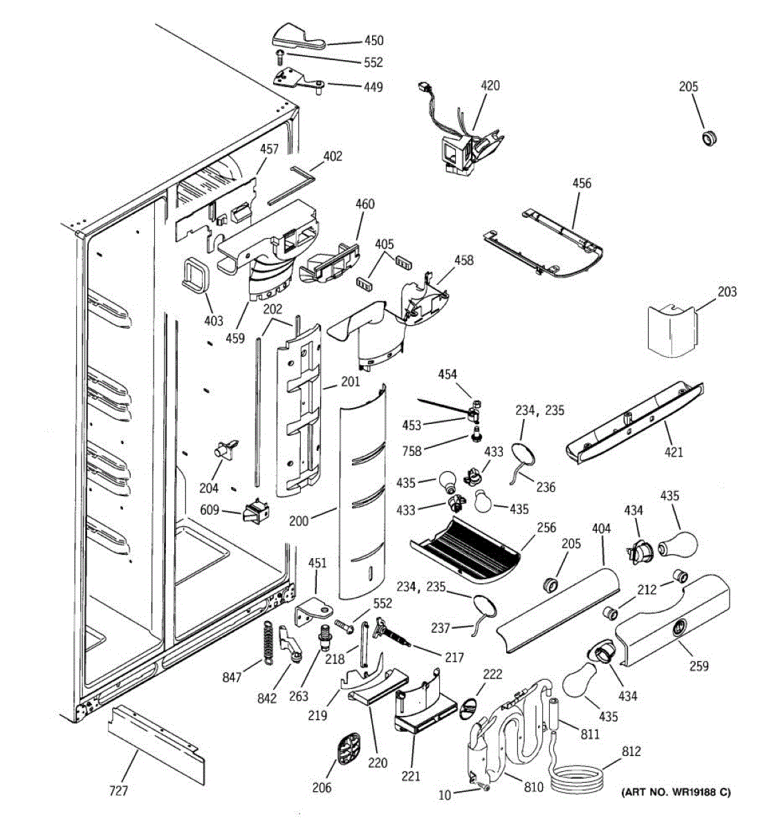 This assembly combines the refrigerator's internal water reservoir (tank) with its attached tubing to deliver chilled water to the dispenser. Replace a cracked or leaking tank to restore proper water flow and prevent leaks inside the fresh food compartment. What it does:
