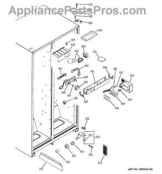 The Light Switch is an OEM replacement part for GE refrigerators. It controls the interior light, turning it on when the refrigerator door is opened and off when the door is closed. This ensures proper illumination for visibility when accessing the refrigerator's contents.