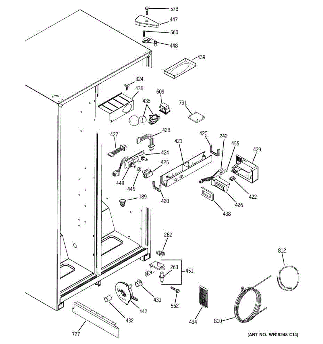 The cold water reservoir is an OEM replacement part for GE refrigerators. It serves a dual purpose, holding the supply of cold water needed for both the ice maker and water dispensing functions. This ensures that each ice cube is formed from chilled water and that cold water is always ready to be dispensed. Causes of a bad reservoir can include cracks, fractures, or leaks developing in the plastic over time due to repeated filling and draining. Mineral deposits or contamination of the water supply can also compromise performance. Symptoms of an issue include: