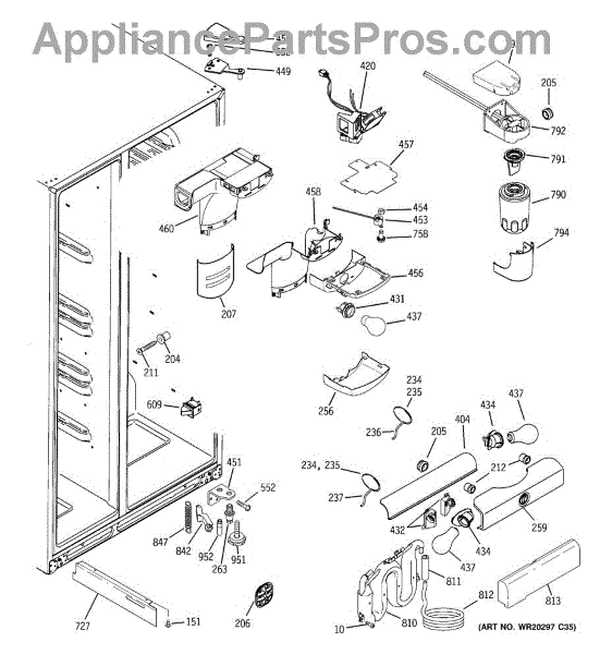 The Water Filter Housing Assembly is an OEM part for GE refrigerators. The water filter head holds the water filter and connects the water lines to the water filter. Includes the filter head and water lines. Causes can involve cracks, deformities or wear to sealing surfaces over time. Accidental dents or impacts may compromise housing integrity. Symptoms of a bad housing assembly include: