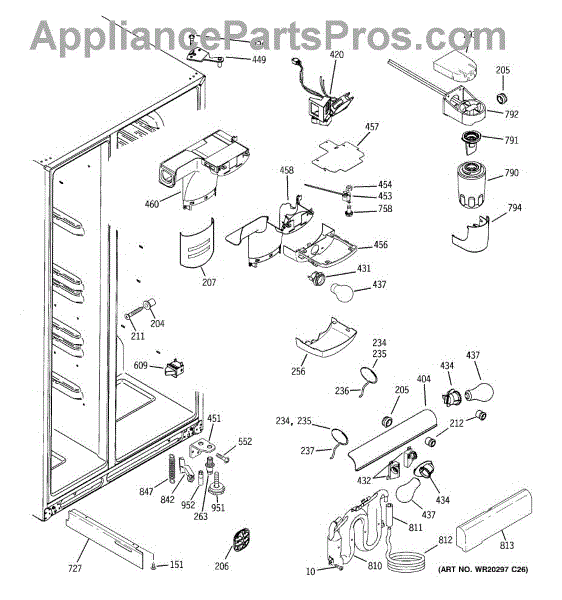 The Water Filter Housing Assembly is an OEM part for GE refrigerators. The water filter head holds the water filter and connects the water lines to the water filter. Includes the filter head and water lines. Causes can involve cracks, deformities or wear to sealing surfaces over time. Accidental dents or impacts may compromise housing integrity. Symptoms of a bad housing assembly include: