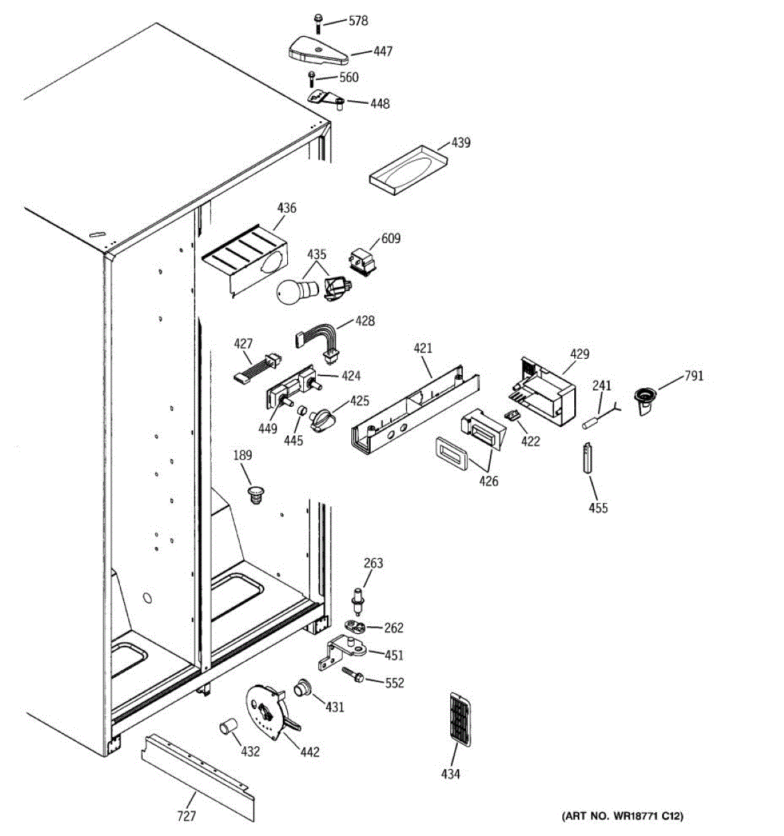 The Light Switch is an OEM replacement part for GE refrigerators. It controls the interior light, turning it on when the refrigerator door is opened and off when the door is closed. This ensures proper illumination for visibility when accessing the refrigerator's contents.