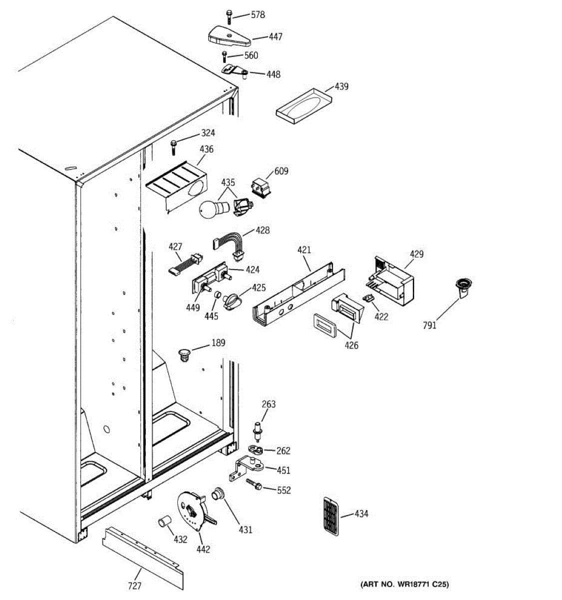 The Light Switch is an OEM replacement part for GE refrigerators. It controls the interior light, turning it on when the refrigerator door is opened and off when the door is closed. This ensures proper illumination for visibility when accessing the refrigerator's contents.